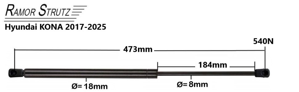 - Length 473mm, Stroke 184mm, Strength 540N