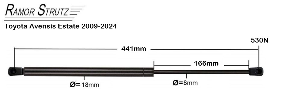- Two boot gas struts compatible with a Toyota Avensis Estate 2009-2018