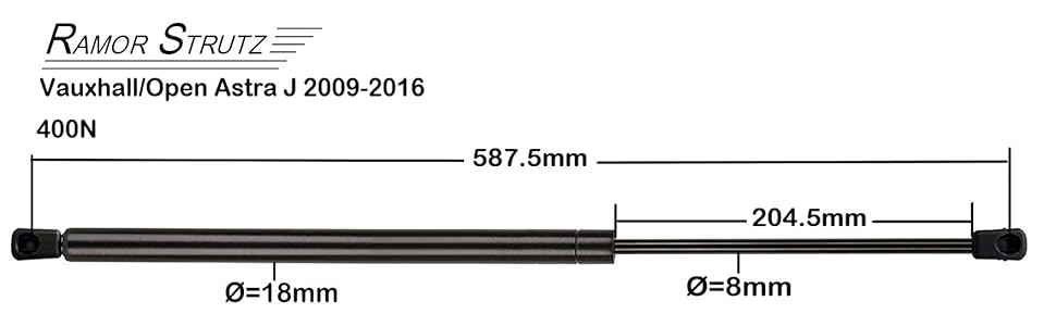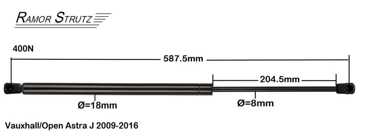 - Two boot gas struts compatible with a Vauxhall Astra J 2009-2016